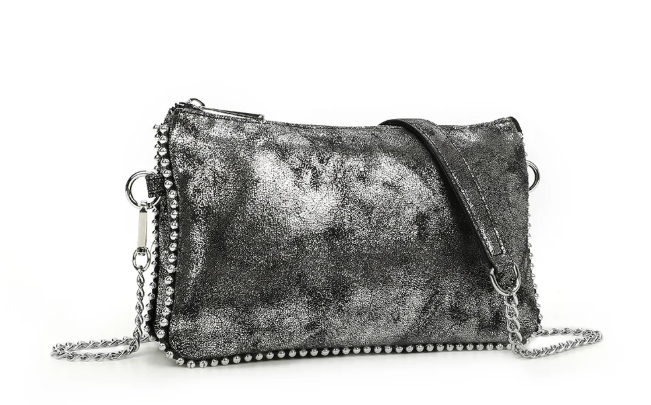 Bandoulière chaîne argentée : élégante et pratique, portée à l'épaule ou en crossbody.