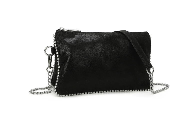 Sac bandoulière Aurora Gallantry en suédine noire avec chaîne argentée