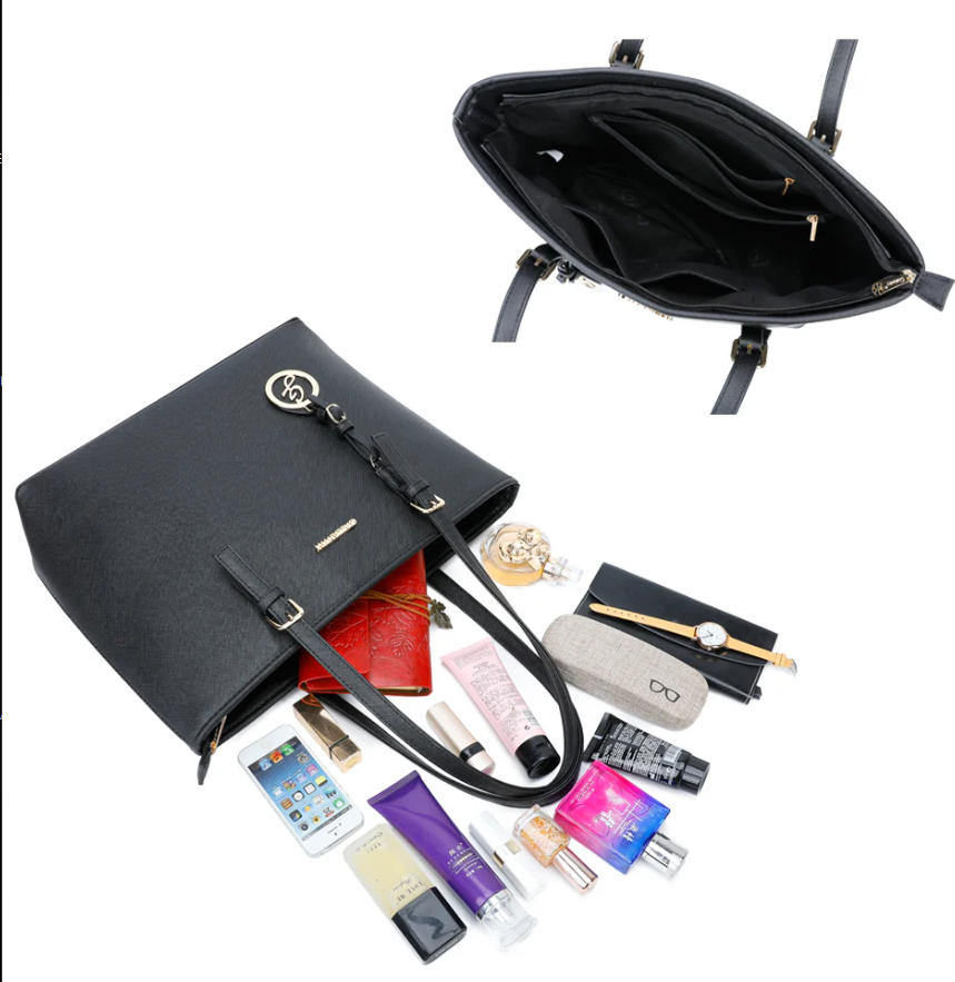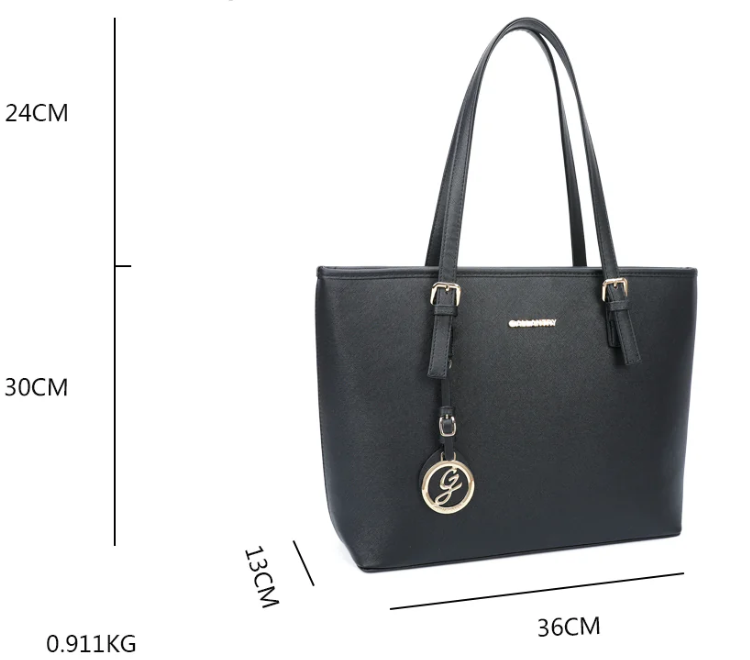 Ce sac cabas en simili cuir noir grainé combine style raffiné et fonctionnalité. Avec sa silhouette épurée et ses détails dorés, il s’impose comme un accessoire incontournable pour accompagner vos journées avec élégance.