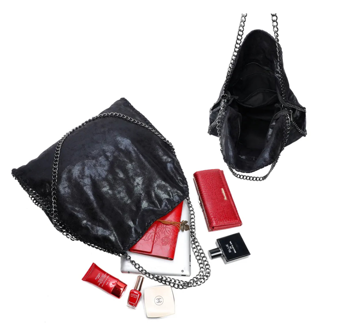 ✔️ Un look chic et affirmé : son design souple et ses chaînes métalliques apportent élégance et modernité, parfaits pour marquer la reprise avec confiance.