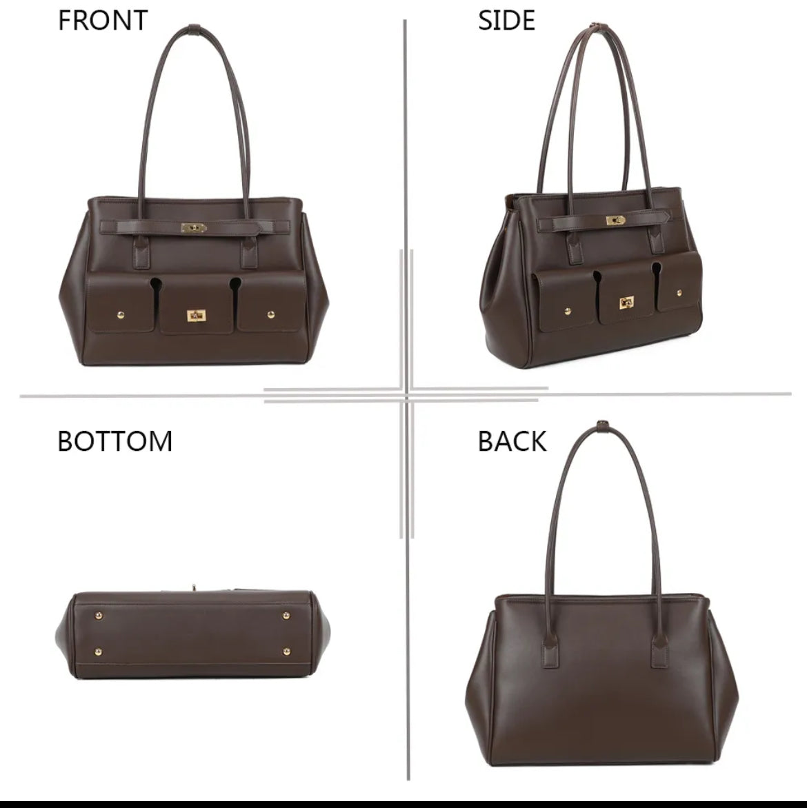 ✔️ Un design raffiné et pratique : silhouette structurée, finitions dorées et poches extérieures fonctionnelles pour un accès rapide à vos essentiels.