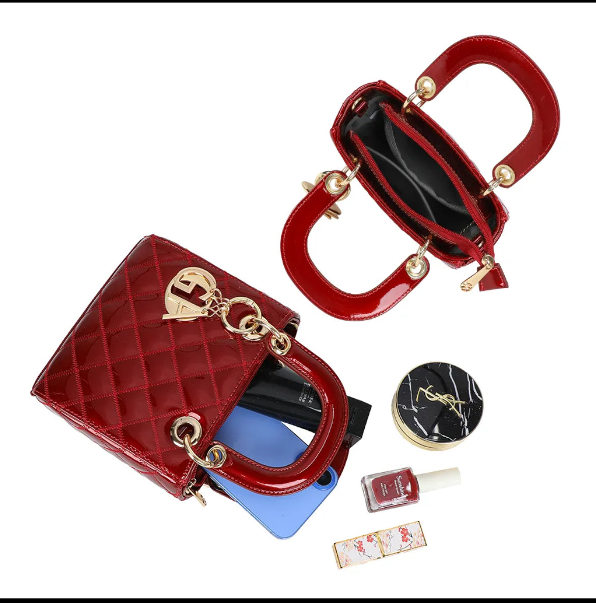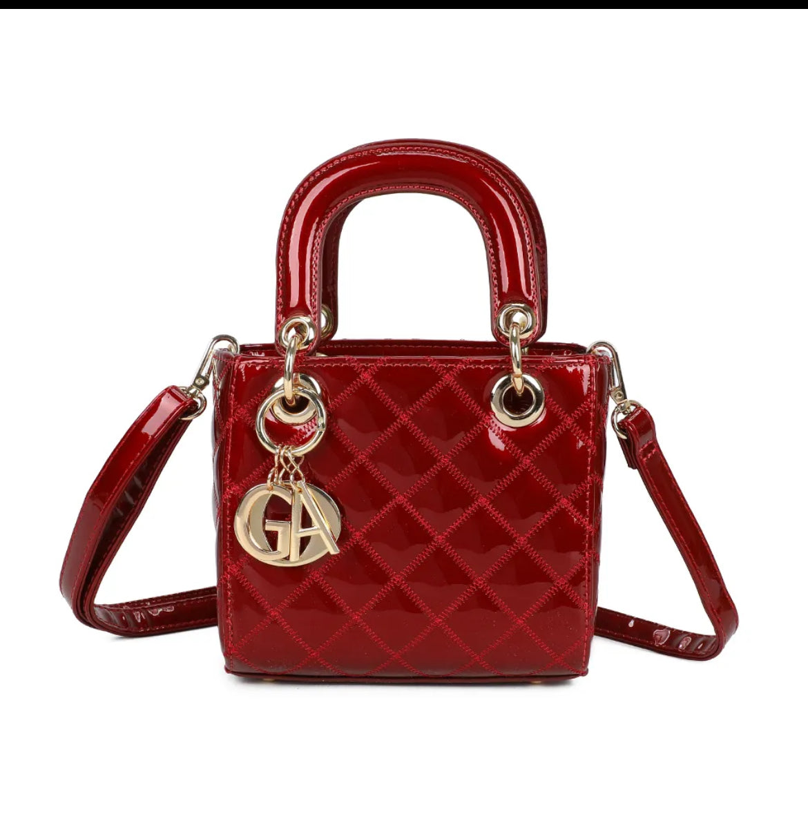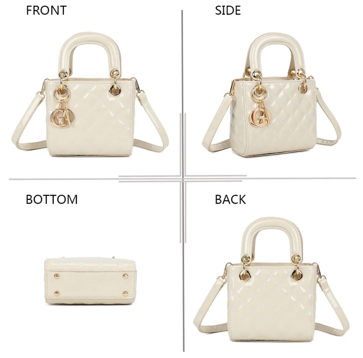 ✔️ Design chic et moderne : cuir verni matelassé, finitions dorées et pendentif emblématique GA pour un rendu luxueux.
