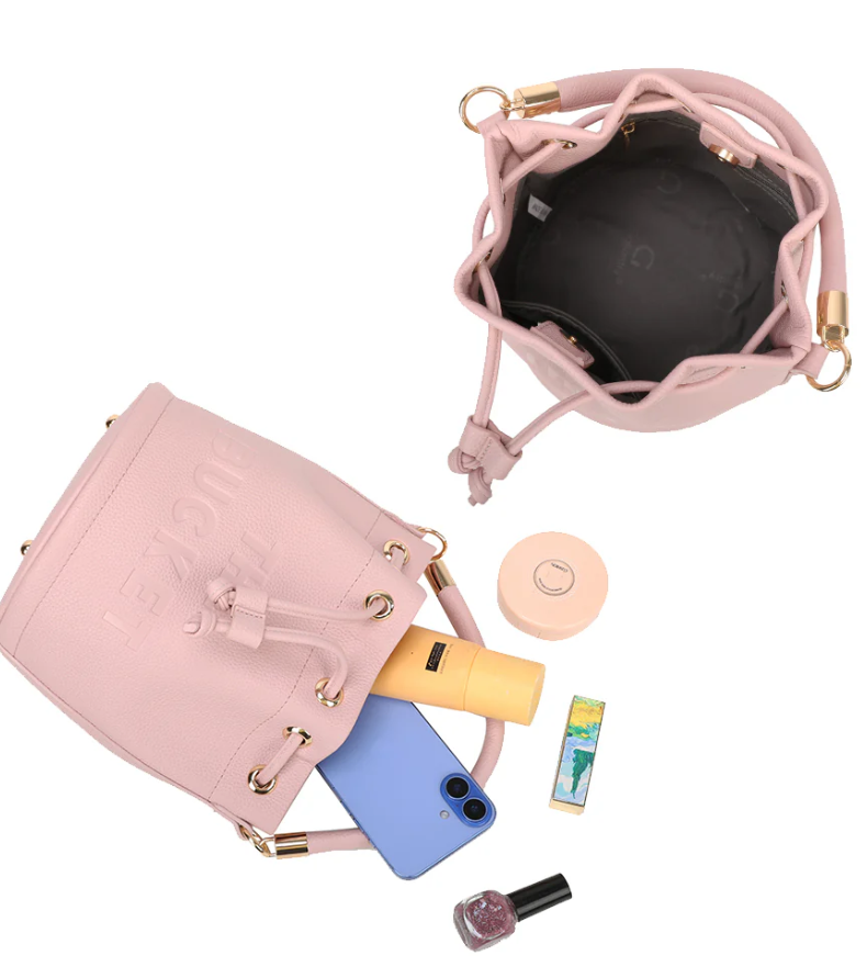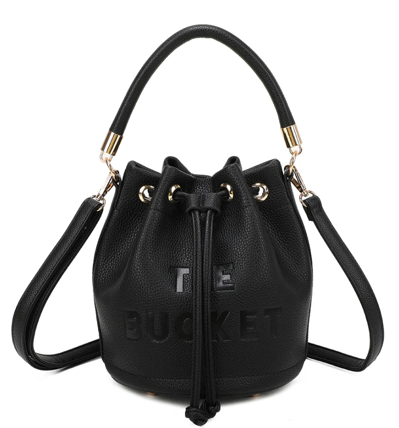 Sac seau Gallantry – Simili cuir noir grainé, anse élégante & bandoulière réglable